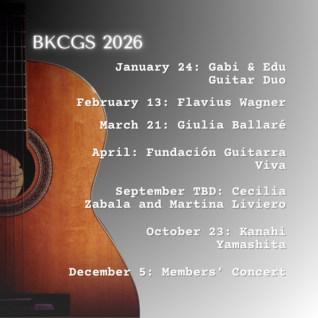 If you have any questions, feel free to reach out at hello@bkcgs.org. We hope to see you in Brooklyn as we begin another great year of concerts, community, and classical guitar.